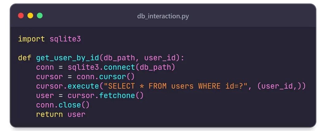 确保应用程序按预期与数据库交互至关重要。假设有一个查询数据库以按 ID 检索用户的函数: