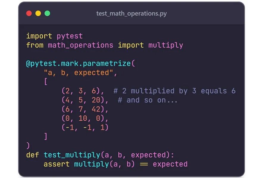 强大的测试框架应该有助于根据各种输入验证功能或方法,以确保其正确性。Pytest 通过参数化测试的能力在这方面表现出色。参数化有助于使用不同的输入值多次执行测试,这是确认代码在不同条件下的功能和可靠性的关键实践。
