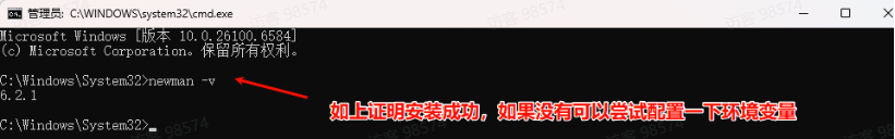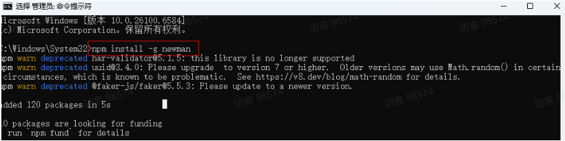 • 打开终端/命令提示符,全局安装 Newman:npm install -g newman