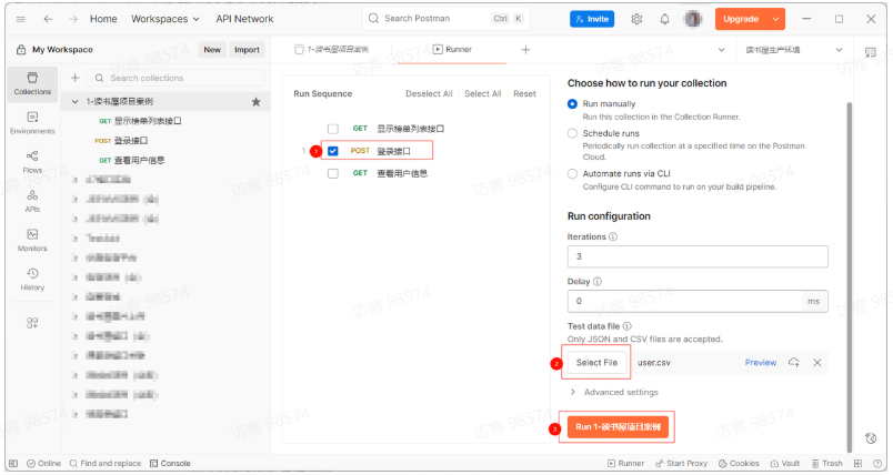 选择对应的测试集的 Collections—> Run。