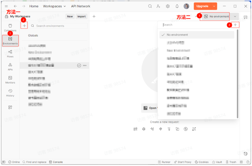 • Environments(环境变量):创建对应的环境变量、全局变量等。