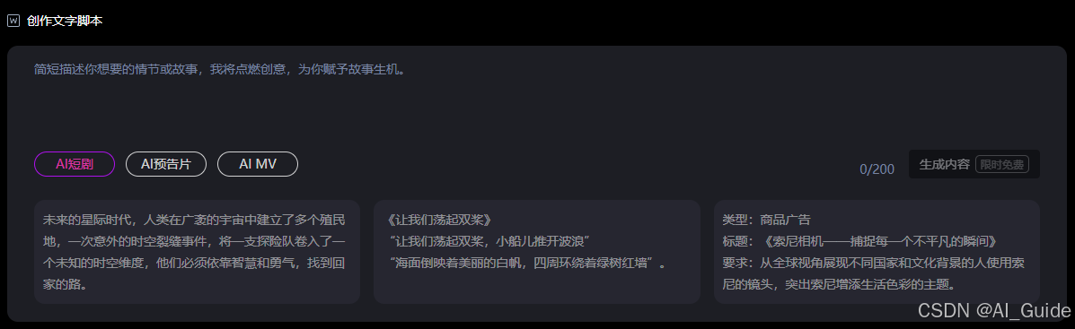 【创意无限,一键生成】 只需简单的描述,星火绘镜就能将您的故事转化为生动的画面。无论是情感丰富的失恋情歌,还是充满想象力的科幻故事,它都能帮您轻松实现。