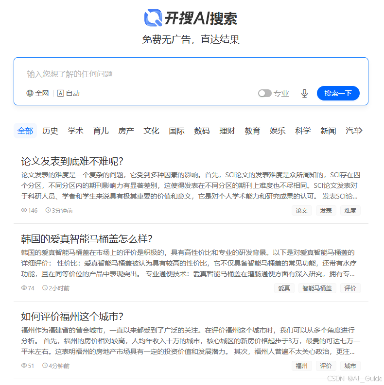 在信息化社会,资讯的即时获取成为各行各业发展的关键因素。开搜AI问答搜索,这款创新的线上利器,以它的独到之处,为使用者带来全新的搜寻乐趣。