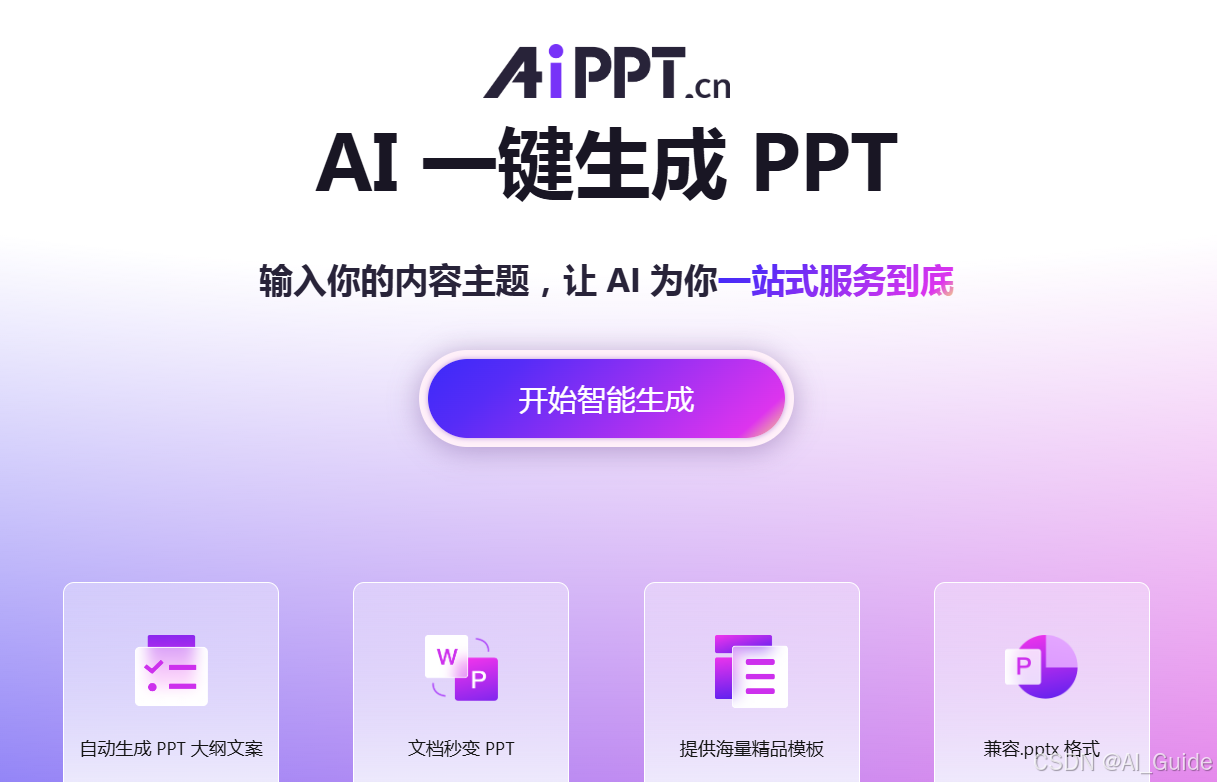 在AI智能化浪潮席卷之际,传统制作PPT的方式已然过时,无法适应当今社会对时间和效率的极致要求。迎来一场创新风暴的是AiPPT,一个依托于尖端AI技术的在线智能PPT生成平台。它实现了效率与创新的完美融合,彻底颠覆了传统PPT制作的繁琐流程。
