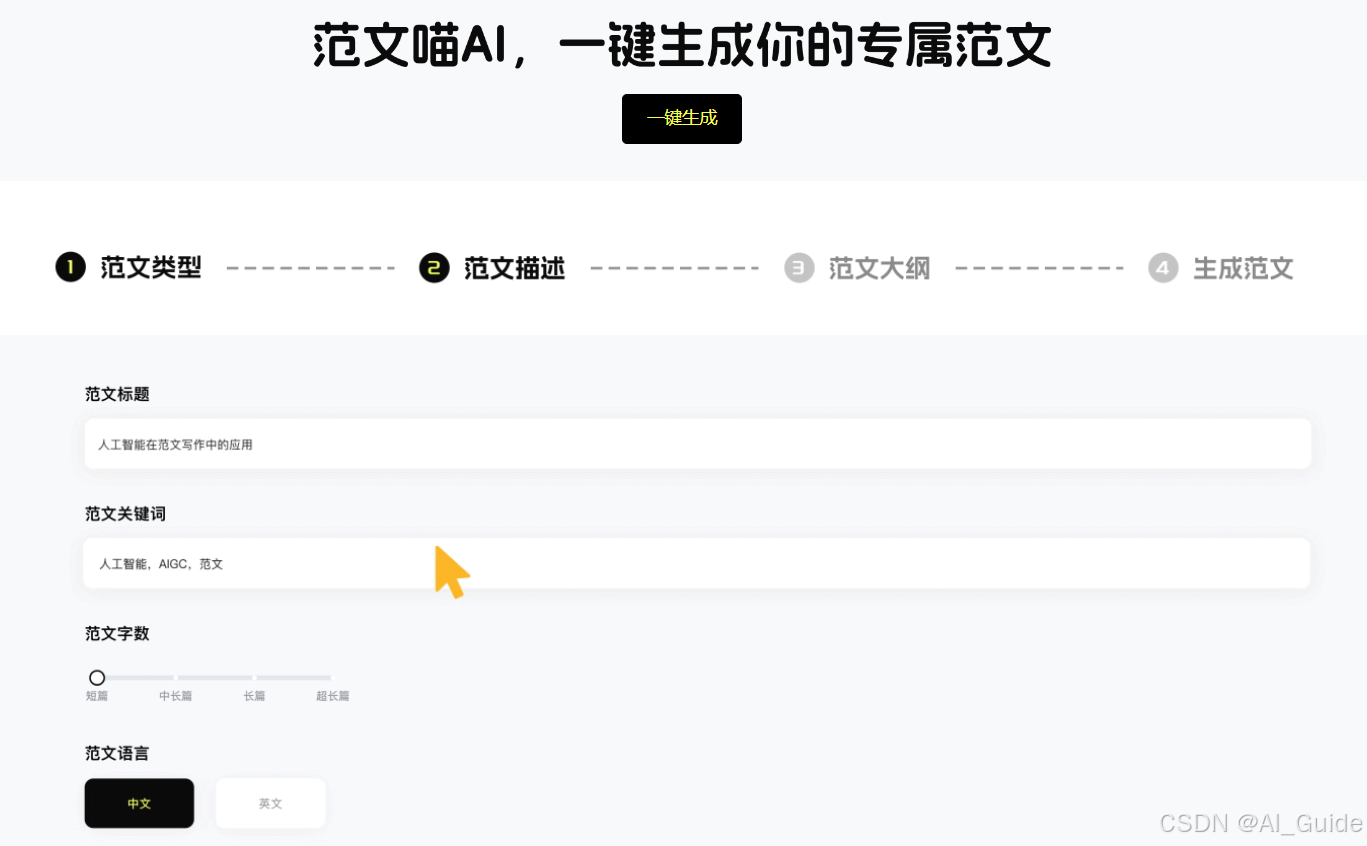 随着工作和学业压力的增加,大家都在寻找方法来提高效率,减轻负担。对于需要经常进行写作的人来说,"范文喵"就是一个能够提供帮助的在线神器。它是一个独特的网络平台,目的在于帮助用户轻松地创建符合个人需求的范例文本,提供了一站式的解决方案,使得写作不再是一项艰难的任务。