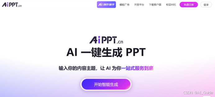 AiPPT是一个全智能的AI助手,它能够一键生成PPT,让制作PPT变得简单而高效。只需输入标题,AiPPT就能自动生成PPT大纲和文案,甚至还能将Word文档等一键转为PPT,大大提升了工作效率。