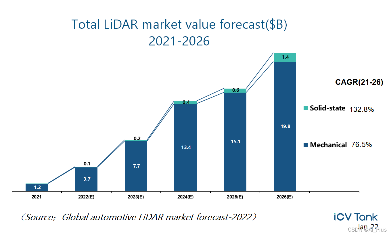 全球知名前沿科技咨询机构ICV发布了题为《Global automotive LiDAR market forecast-2022》的报告,对全球车载激光雷达产业做出了精准分析和预测。