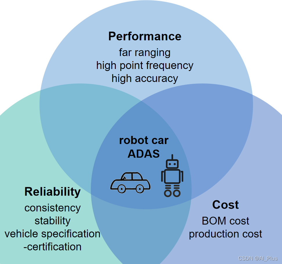 车载激光雷达的发展主要看以下三个维度:性能、可靠性和成本。其中,性能包括远测距、高点频、高精度等探测能力,可靠性要求激光雷达具有较好的一致性、稳定性并通过车规认证,二者共同决定了激光雷达的价值。成本包含了物料成本、生产成本等,是制约车载激光雷达大规模量产应用的关键因素。通过技术革新降低成本是车载激光雷达能够大规模推广的必经之路。