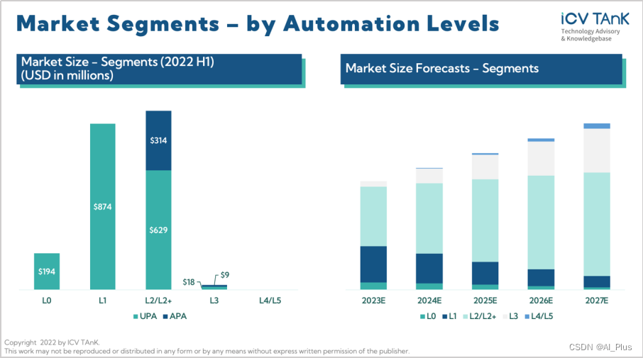ICV这篇报告旨在评估车载超声波雷达的市场情况,评估对象仅为安装于乘用车上的超声波雷达,其他商用车所安装的超声波雷达不在研究范围内。ICV将车载超声波雷达全球市场按照超声波雷达的类型、乘用车的自动化等级以及地理位置三个方向进行了细分,统计了以上每一个细分市场的市场规模并且对未来五年的市场规模作出预测。