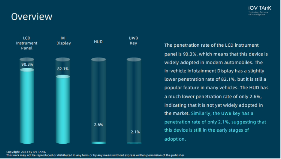 2022年UWB数字钥匙的渗透率仅为2.1%,主机厂们自2022年开始将UWB数字钥匙作为一套解决方案,目前还只有高端车型才配置。但随着技术的提升、相关法规的完善以及成本的下降,UWB数字钥匙的渗透率预计是稳步上涨的,预计在2027年超过50%。