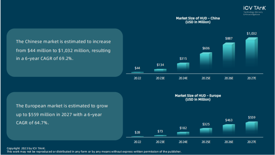 中国作为乘用车产销大国,2022年UWB数字钥匙的市场规模为0.44亿美元,预计到2027年会增长到10.32亿美元,6年期的CAGR约为69.2%。2022年欧洲市场的市场规模为0.28亿美元,预计在2027年达到5.59亿美元。