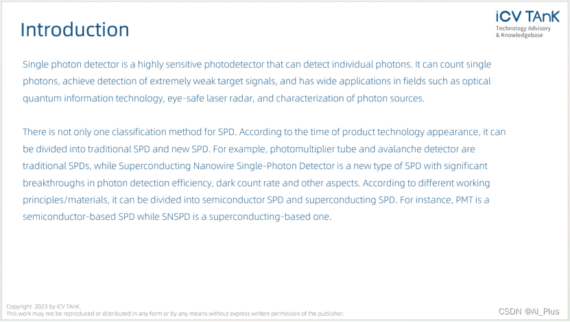 近日,专注于前沿科技领域的国际咨询机构ICV发布了全球单光子探测器市场研究报告,报告分析了单光子探测器(SPD)市场,包括产品定位、下游应用、主要供应商、市场情况和未来趋势等各个方面,以进行分析和预测。