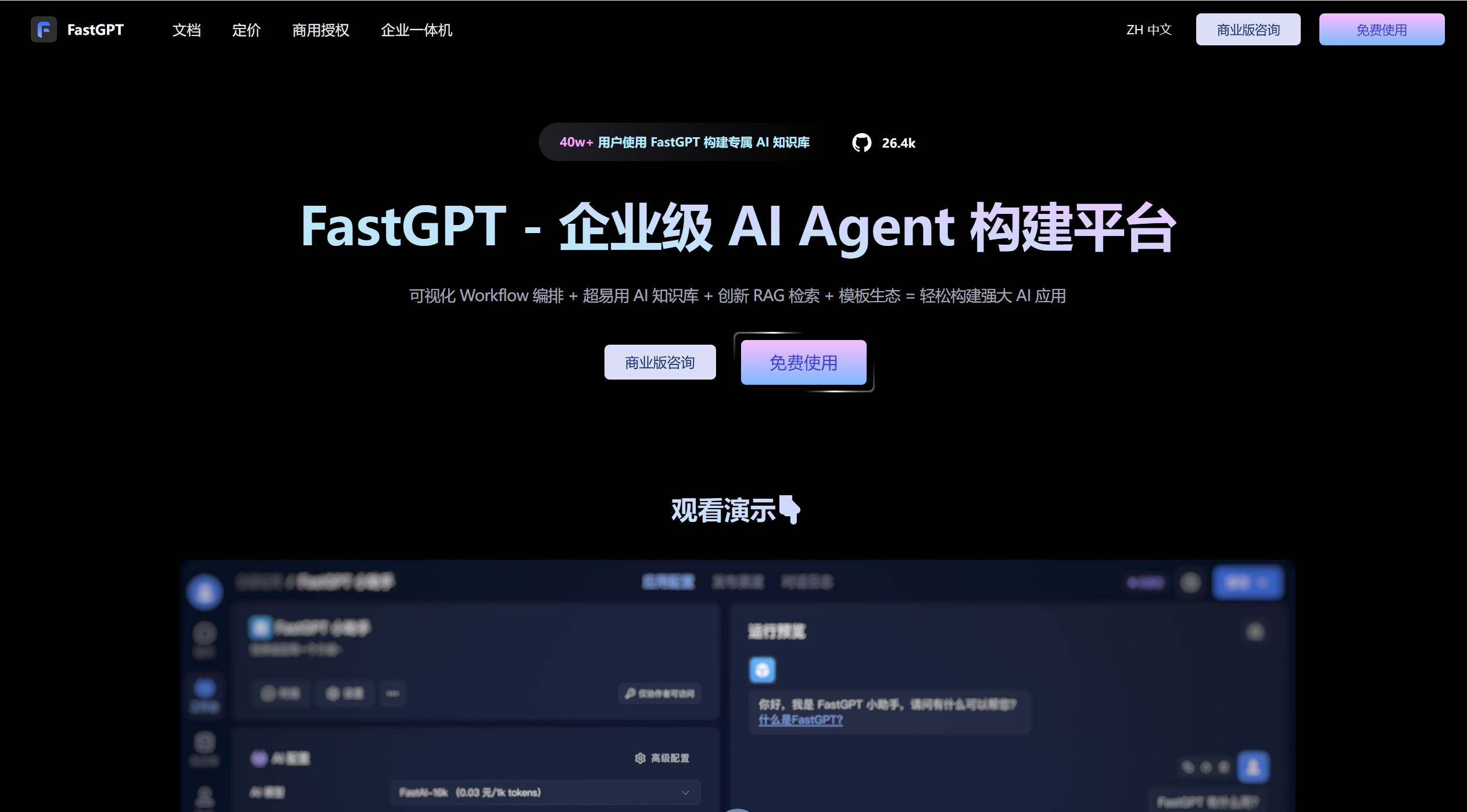 FastGPT:专注于知识库构建,界面简洁但功能相对单一