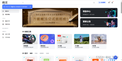 在这个时代,视觉表达已成为我们传达情感和观念的关键方式。随着科技的不断进步,数字化设计平台——稿定设计应势而生,为用户提供了一个简便而强大的在线设计解决方案。这个平台以大量受版权保护的高质量素材和模板著称,使每个人都能轻松地将设计想像化为实际。稿定设计的用户界面极其友好,使得编辑过程变得十分直观和愉快,允许用户随时对其作品进行调整和优化。无论你是需要处理图像还是编辑视频,稿定设计都能提供全面的解决方案。其丰富的资源库和多样化的模板选择,不仅加快了设计步伐,还确保了每一件作品的独特性,同时保障了版权的安全。 使用稿定设计,你可以抛开传统设计软件的复杂性,轻松将你的创意转化为实际作品。它不仅对专业设计师极为有用,也对任何有展示创意需求的普通人极为便利。在如今这个强调视觉传达的世界里,稿定设计让你在追求设计的道路上更加得心应手,它不仅提升了你的效率,更激发了你的创新思维。 若你正在寻找一个可以启迪灵感、优化设计流程的平台,稿定设计无疑将吸引你的目光。在AIGC.cn,你可以探索更多关于稿定设计的优秀功能以及创意灵感,共同迈入设计的新纪元。