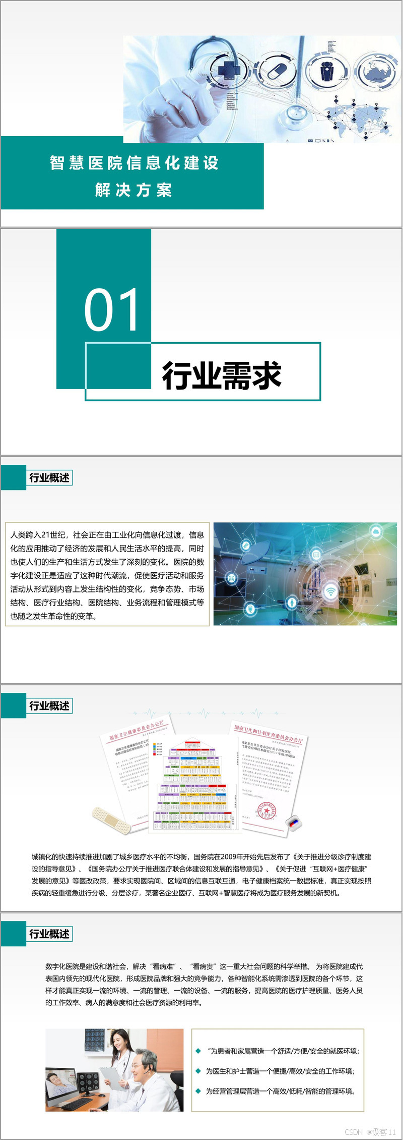 在信息化浪潮的席卷下,医疗行业正经历着深刻变革,智慧医院的建设成为提升医疗服务质量、优化医疗资源配置的关键路径。这份智慧医院信息化建设解决方案,为医院的数字化转型提供了全面且具有针对性的规划,对推动医疗行业的现代化发展意义重大。