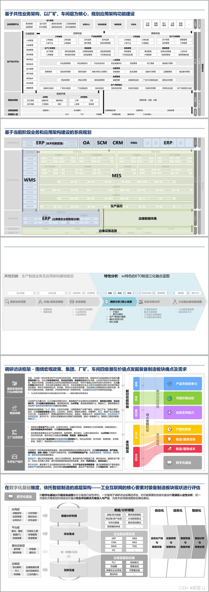 规划以 IT 规划为支撑,构建起 “一面、一立体、一点、一线” 的战略布局。“一面” 即产业协同平台,通过整合产业链上下游资源,促进企业间的协同合作,实现资源共享与优势互补;“一立体” 生态体系平台,致力于打造开放、协同、创新的产业生态,推动企业与供应商、客户、科研机构等各方的深度融合,提升产业整体竞争力;“一点” 三化融合规划,聚焦自动化、信息化、智能化融合,为企业转型升级注入强大动力;“一线” 价值链协同,确保企业在研发、生产、销售等各个环节的高效协同,优化资源配置,提高运营效率。