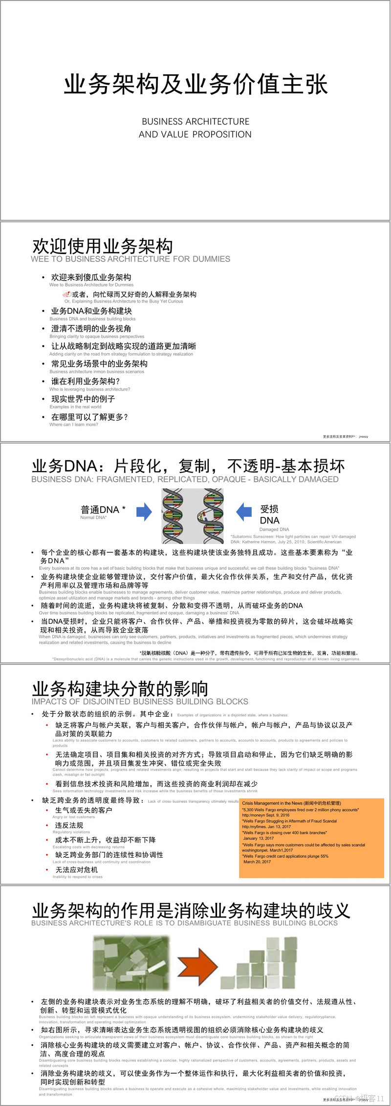 每个企业都有其独特的 “业务 DNA”,由一系列基本构建块组成,这些构建块支撑着企业管理协议、交付客户价值、优化资产利用等核心活动。然而,随着企业发展,业务构建块可能出现复制、分散和不透明的情况,损害业务 DNA,导致企业在客户关联、项目投资规划以及信息技术投资收益等方面出现问题,最终影响企业的战略实现和市场竞争力。例如,曾经轰动一时的富国银行虚假账户事件,众多员工因开设超 200 万个虚假账户被解雇,此后银行面临诸多困境,如分支机构关闭、信用卡申请量大幅下降等,这正是业务构建块分散、企业 DNA 受损的典型表现。