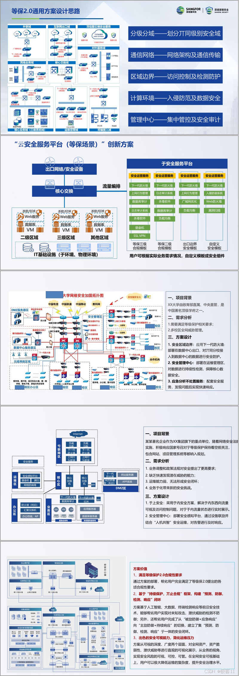 在等保2.0的要求下,网络需要进行分级分域的设计。通过划分不同的安全域,可以更好地管理和控制网络流量,确保每个域的安全性。这种设计思路有助于在发生安全事件时,快速定位和隔离问题。