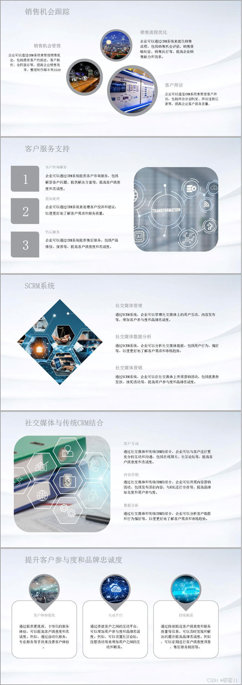 在数字化转型的过程中,全方位顾客运营是企业成功的关键。企业通过客户关系管理系统(CRM)和社交客户关系管理系统(SCRM)来管理客户信息和销售机会,提升客户满意度和忠诚度。