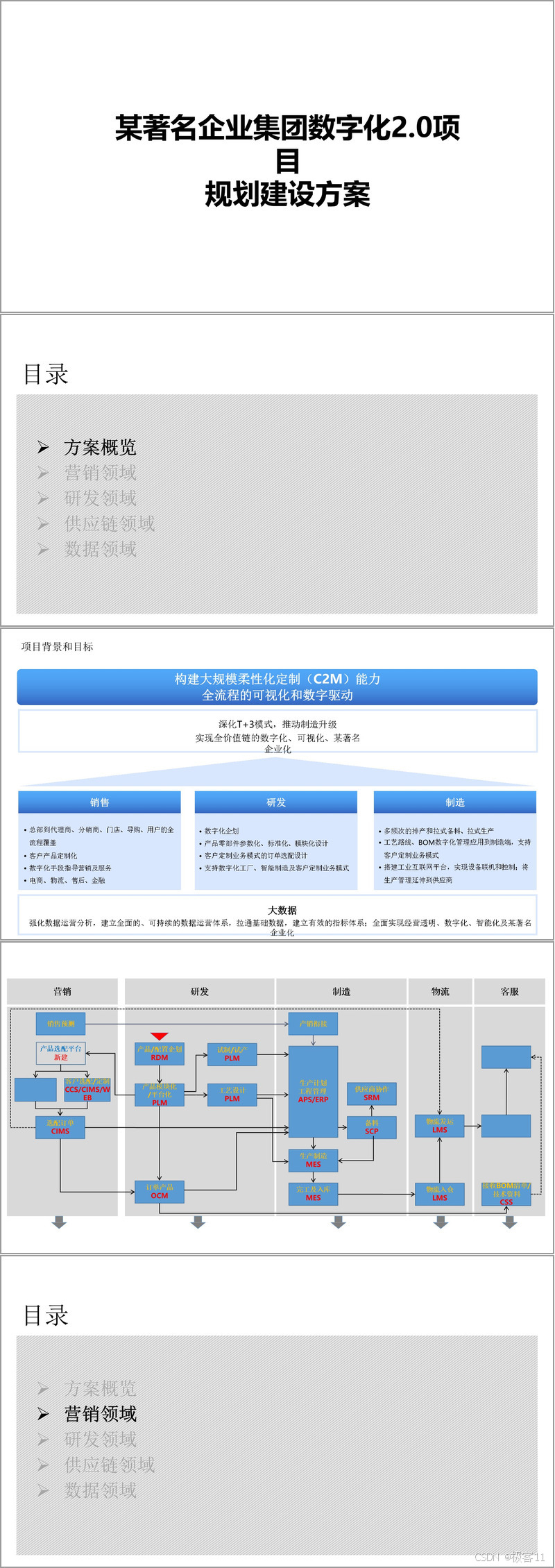 某著名企业集团数字化 2.0 项目规划建设方案,是一个全面、系统的数字化转型蓝图,涵盖了企业运营的各个关键环节。通过在营销、研发、供应链和数据领域的协同推进,有望实现企业的数字化、智能化升级,提升企业在市场中的竞争力,为企业的长远发展奠定坚实基础。接下来请您阅读下面的详细资料吧。