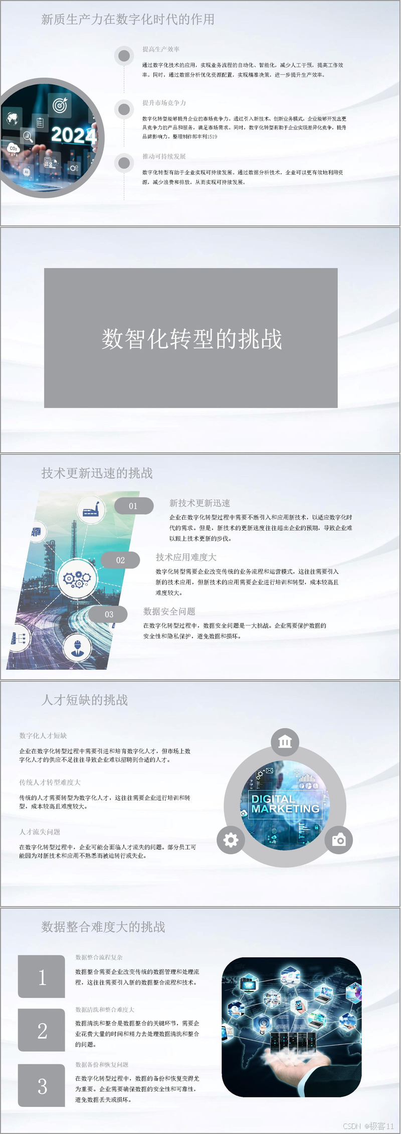 先看新质生产力,它是推动企业数智化转型的核心动力。新质生产力通过运用新技术、新模式、新业态,实现生产力发展质的飞跃,助力经济高效、可持续增长。其中,信息技术是核心,像云计算、大数据、人工智能等,这些技术与共享经济、平台经济等新模式相结合,推动生产力创新发展。在实际应用中,企业借助数字化技术实现业务流程自动化、智能化,减少人工干预,提升工作效率。同时,通过数据分析优化资源配置,做出精准决策,进一步提升生产效率,增强市场竞争力,实现可持续发展。