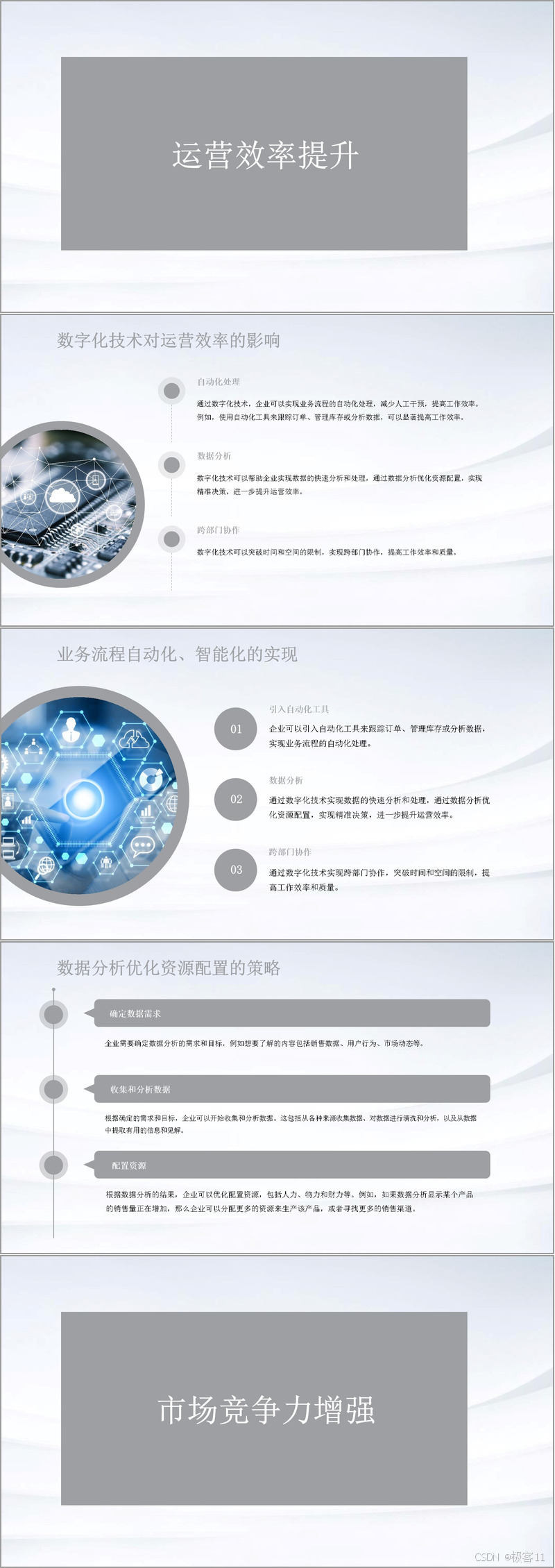 在运营效率提升方面,数字化技术发挥着关键作用。企业可通过自动化处理,引入自动化工具跟踪订单、管理库存、分析数据;借助数据分析优化资源配置,实现精准决策;利用数字化技术打破时空限制,实现跨部门协作,提高工作效率和质量。