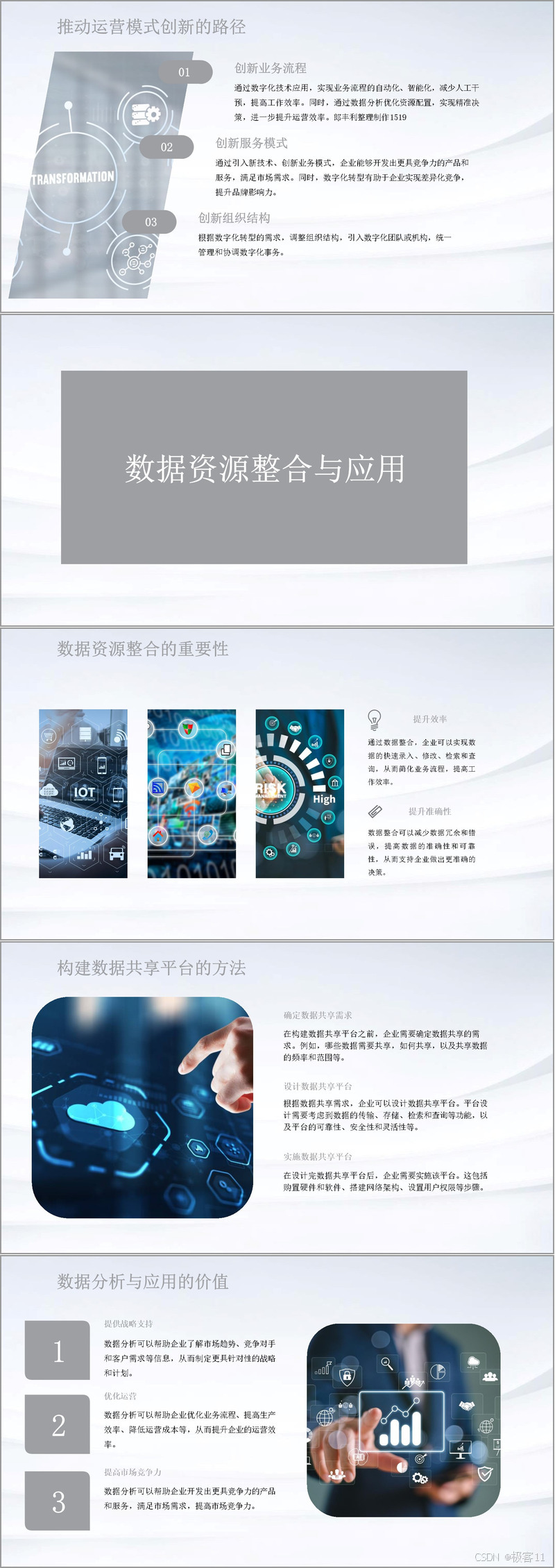 数据资源整合与应用在数智化转型中占据重要地位。数据整合能提升效率,简化业务流程,减少数据冗余和错误,提高数据准确性和可靠性,为企业决策提供有力支持。构建数据共享平台需确定需求、设计平台并实施,每个环节都至关重要。数据分析与应用价值巨大,能为企业提供战略支持,优化运营,提高市场竞争力。
