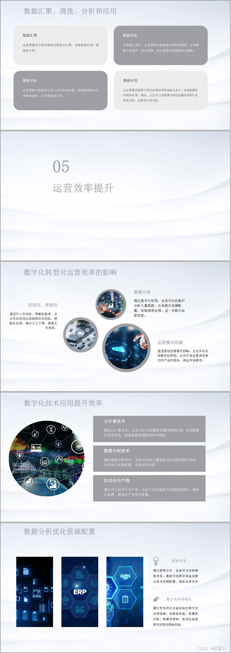 运营效率的提升是数智化转型的重要目标。通过引入自动化、智能化技术,实现业务流程自动化;借助数据分析优化资源配置,实现精准决策;推动运营模式创新,开发竞争力强的产品服务。云计算技术、数据分析技术以及自动化生产线等数字化技术的应用,都能显著提升效率。