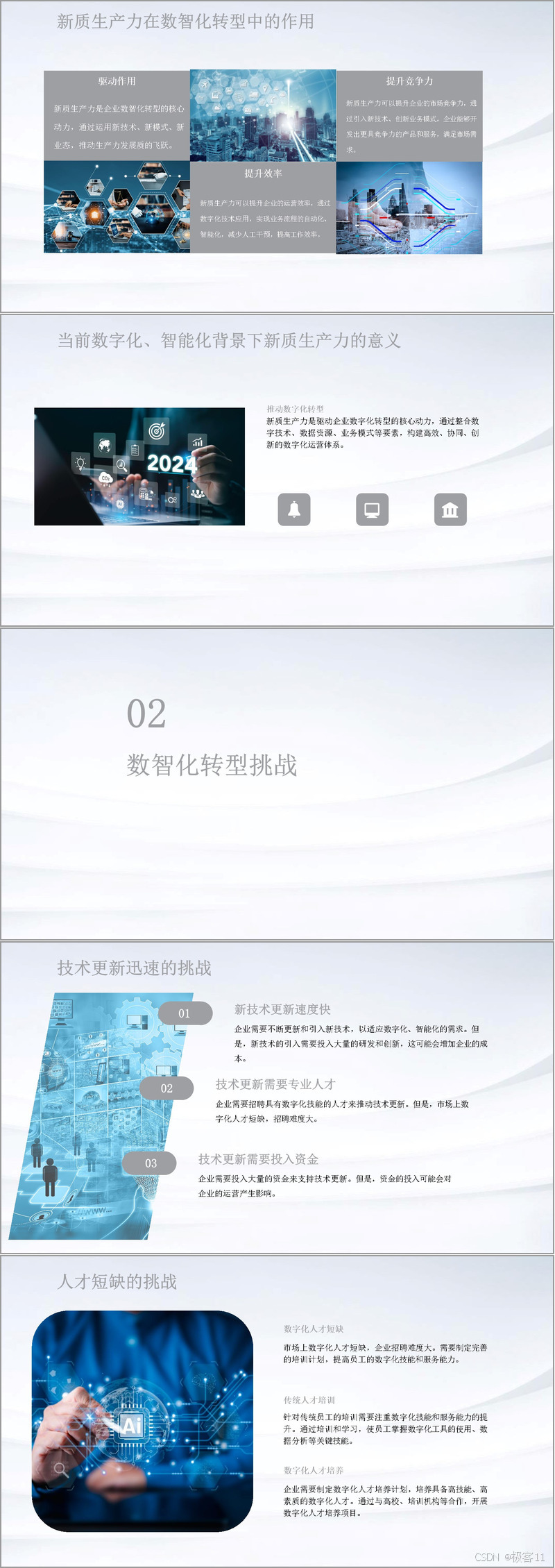新质生产力是企业数智化转型的核心驱动力,它借助大数据、云计算、人工智能等前沿技术,推动生产力实现质的飞跃。不仅革新了生产模式,还催生出智能制造、智慧供应链、智慧营销等新业态。对于企业而言,新质生产力能提升市场竞争力,助力开发更契合市场需求的产品与服务;还能提高运营效率,通过数字化手段实现业务流程自动化、智能化,减少人工干预。
