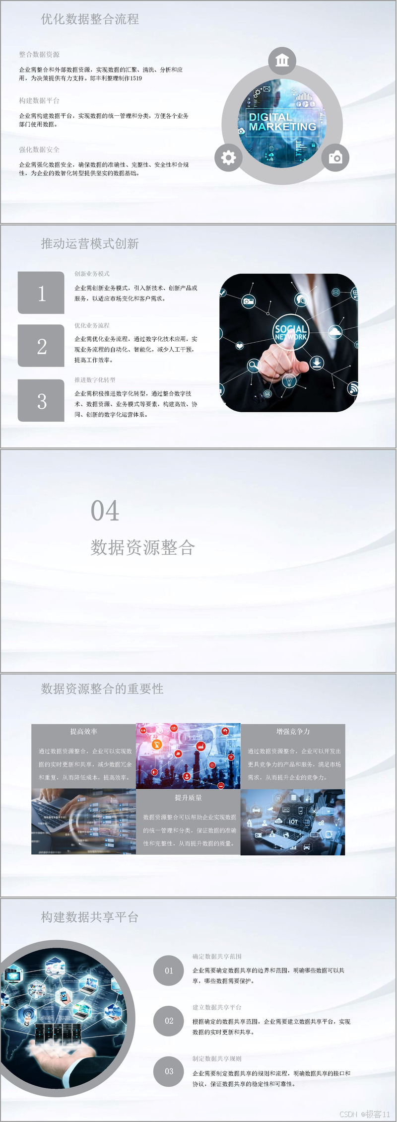 数据资源整合对企业意义重大,它能提高效率,减少数据冗余与重复;增强竞争力,助力开发优质产品服务;提升数据质量,实现统一管理分类。为此,企业要制定数据共享规则,确定共享范围,建立共享平台。还要做好数据汇聚、清洗、分析和应用,让数据发挥价值。