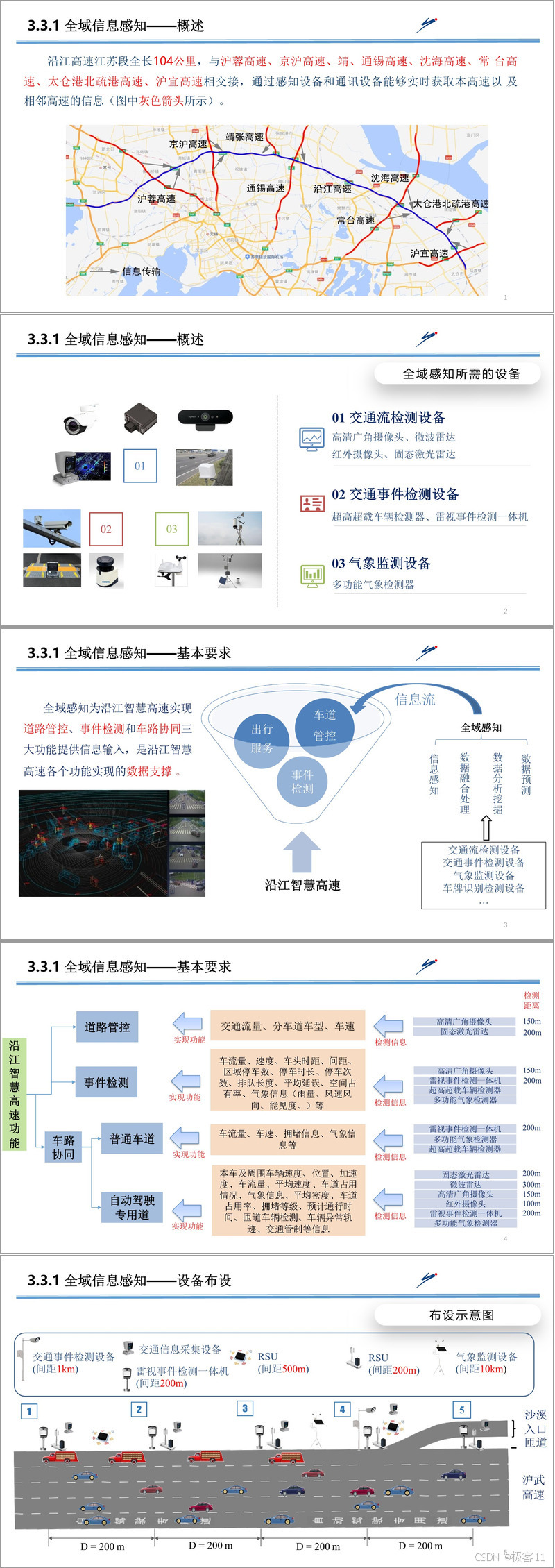 沿江高速智慧化建设方案通过全域信息感知、道路动态管控、异常事件的全天候预警和车路协同等手段,全面提升高速公路的安全性、效率和智能化水平。方案结合国家政策和地方实际需求,具有很强的针对性和可操作性。