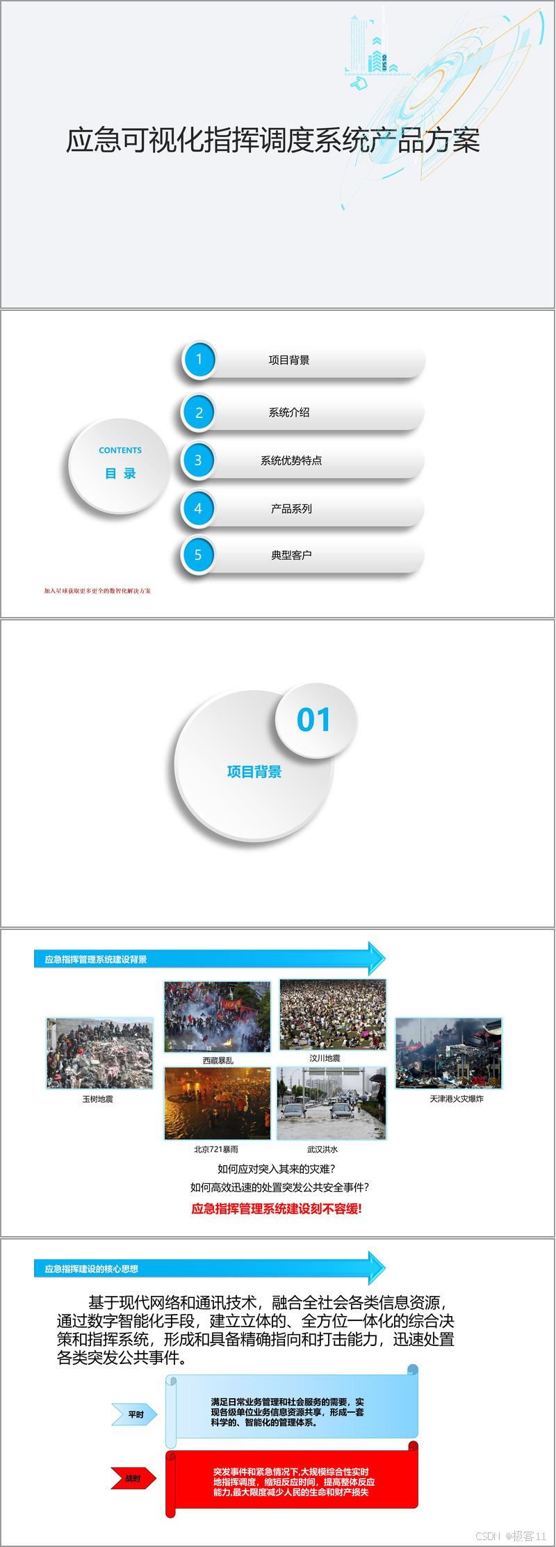 在现代社会中,突发公共安全事件的频繁发生对政府和相关部门的应急指挥能力提出了更高的要求。为了应对突如其来的灾难,如何高效迅速地处置突发公共安全事件成为亟待解决的问题。为此,应急指挥管理系统的建设显得尤为重要。本文将详细解读《智慧方案应急可视化指挥调度系统产品方案》的核心内容,从项目背景、系统介绍、系统优势特点、产品系列及典型客户等多个方面进行深入分析。