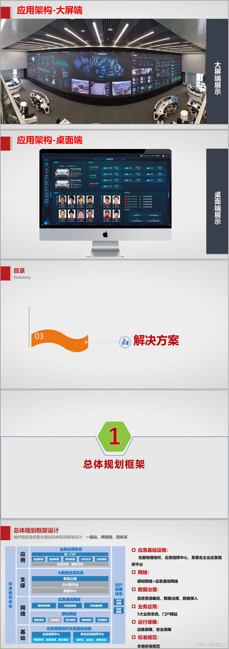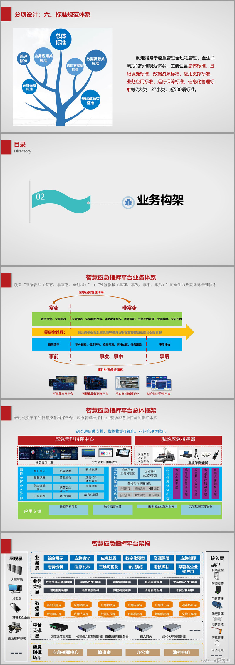 在整体架构设计上,构建 “四纵四横” 架构,形成 “两网络、四体系、两体制”。感知网络通过物联、卫星等多种感知手段,实现对安全生产、自然灾害等领域的全面感知。应急通信网络由指挥信息网、卫星通信网和无线通信网组成,为应急指挥救援提供可靠的通信保障。大数据支撑体系搭建数据中心,进行数据治理与资源调度。业务应用体系按照 “1+5+5+1” 架构设计,涵盖监督管理、监测预警等五大业务应用域。运行保障体系遵循 “零信任” 安全理念和 “智能化” 运维理念,确保系统安全稳定运行。标准规范体系制定了涵盖 7 大类、近 500 项标准,为平台建设与运行提供规范依据。