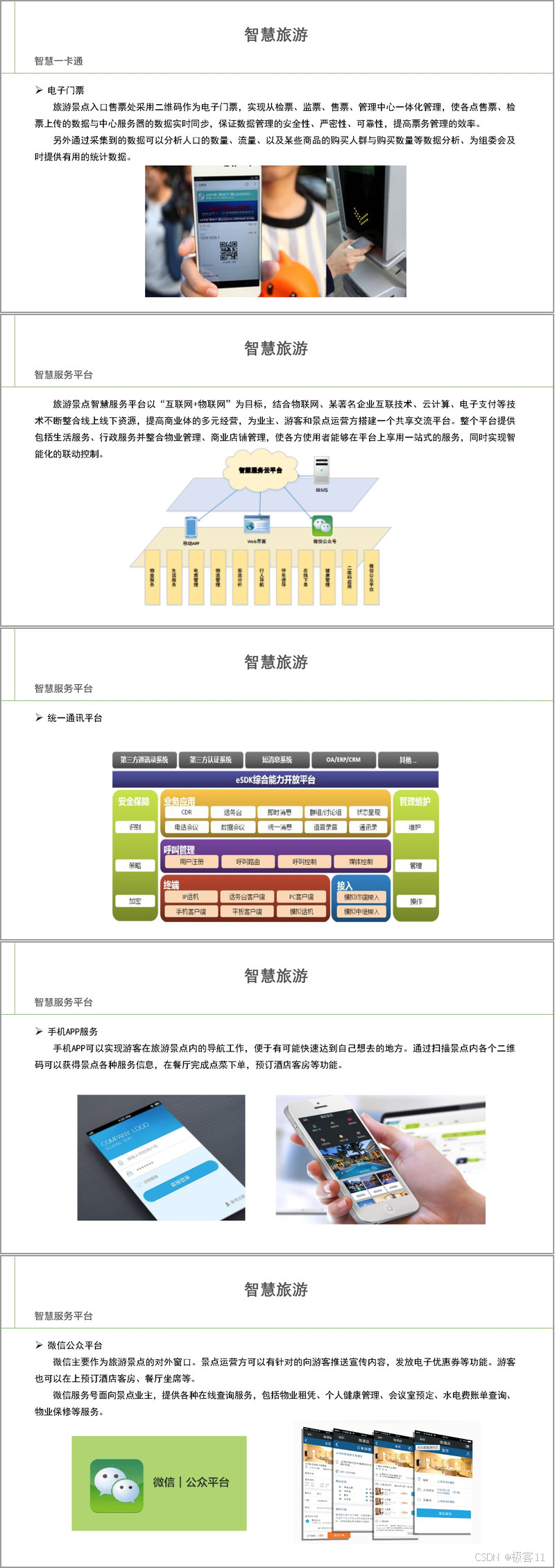 在总体规划上,智慧旅游与当地相关理念相契合,依据不同业态引入智能化系统服务。旅游景点服务区以游客入园服务接待为核心,采用二维码验售票,减少资源浪费,同时提供景点一卡通,实现支付、酒店门禁等功能,方便游客信息管理。此外,专属手机 APP 为游客提供导航、酒店预订、餐厅订餐及景点信息推送等服务,极大提升了游客体验。