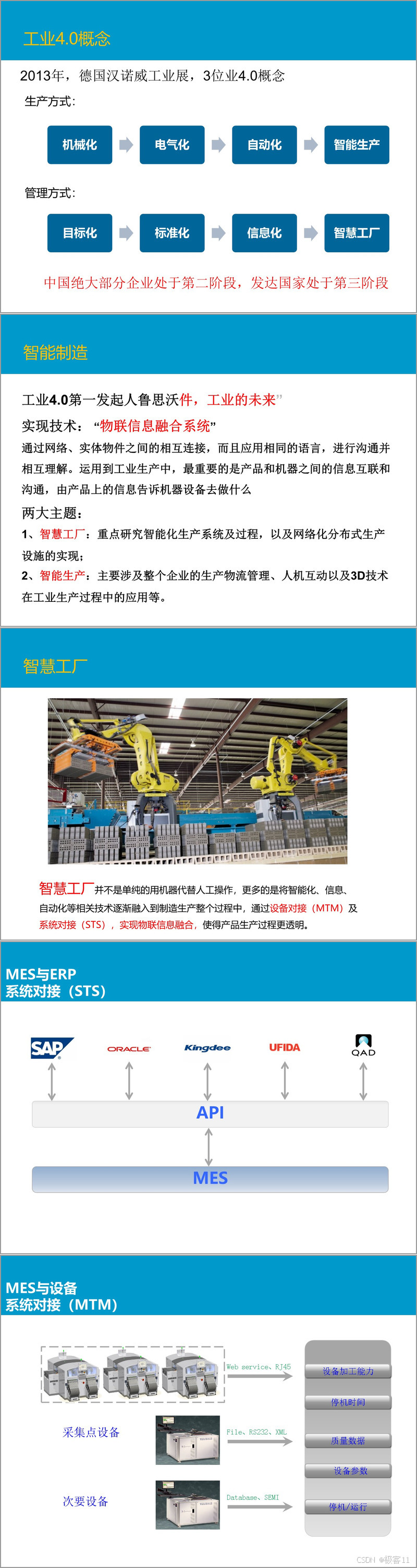 工业4.0概念于2013年在德国汉诺威工业展上提出,旨在通过物联信息融合系统实现智能化生产。C-MES系统作为智能制造的重要组成部分,强调MES与ERP、设备系统的对接,实现生产过程的透明化和智能化。