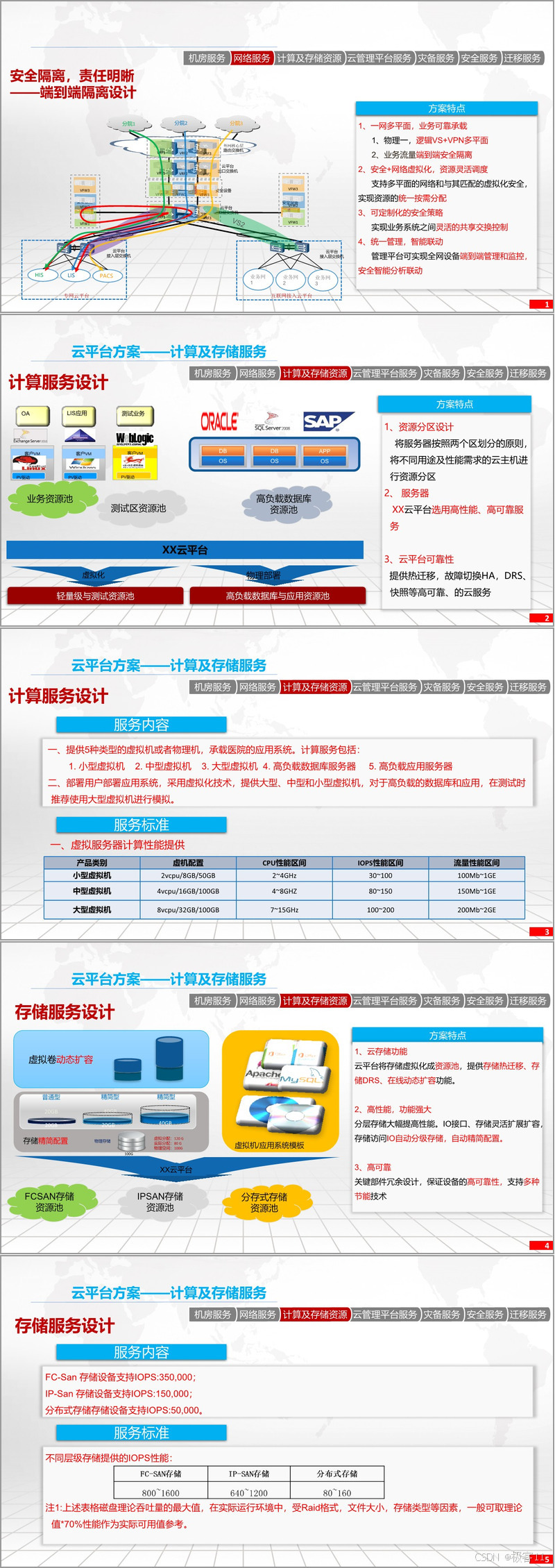XX云平台的架构设计强调资源的统一调度和管理。通过集中云管理平台,实现运营子系统、运维子系统和门户子系统的高效运作。资源池的布局采用分步策略,至2016年已形成多个资源池,满足不同用户的计算和存储需求。平台具备高可靠性,通过同步复制技术实现资源池之间的互备,确保运营商级的高可靠服务。