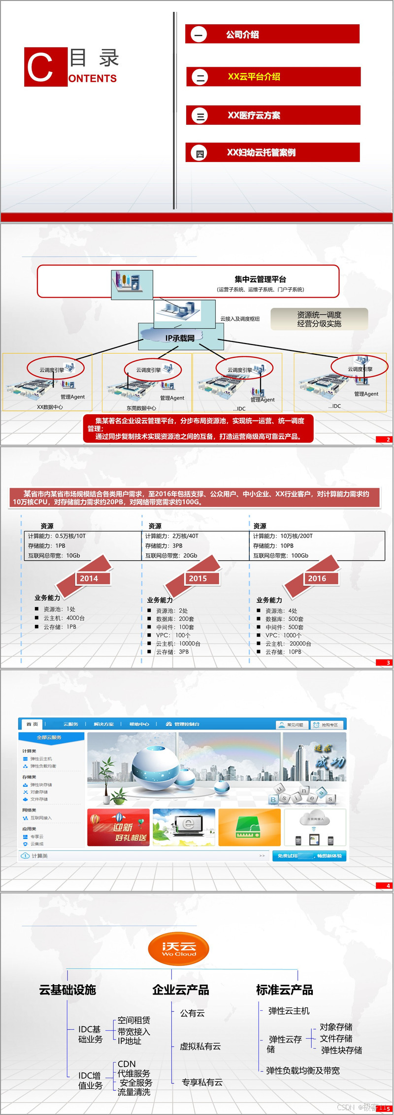 XX云公司致力于IDC和云服务的专业化运营,通过覆盖目标客户群的垂直扁平营销体系,实现全网统一的IDC资源管控和业务管理体系。公司构建了集“研、营、运”为一体的独立自主研发体系,并建立了云计算和IDC的专业化运维服务体系。其总体战略涵盖公众云、行业云、私有云等多个层面,旨在打造一流的云计算基础设施和公共云平台。