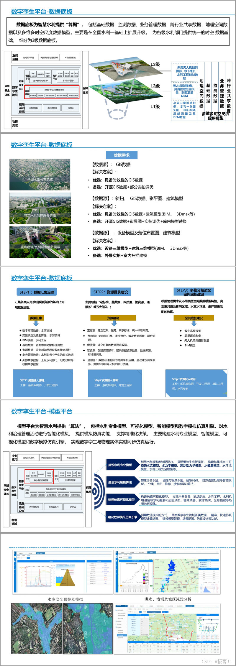 - 数据底板建设:通过多尺度空间数据(如无人机倾斜摄影、卫星遥感)构建高精度水利模型,支持主河道仿真、淹没分析等场景。