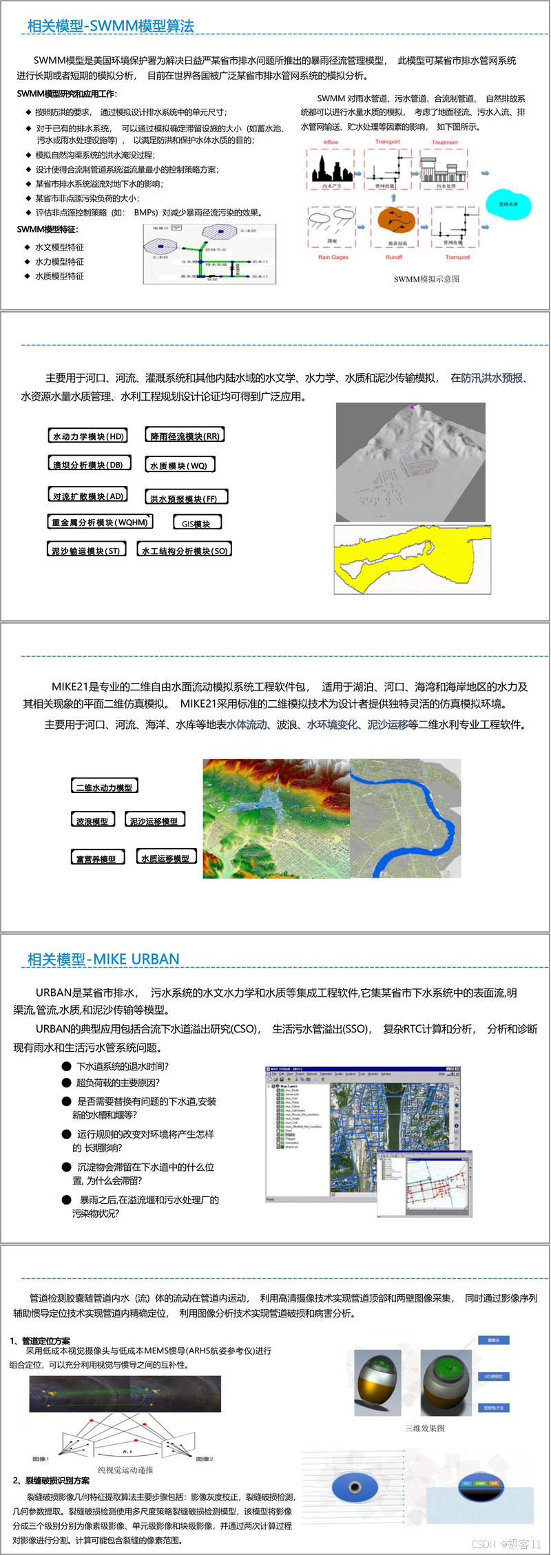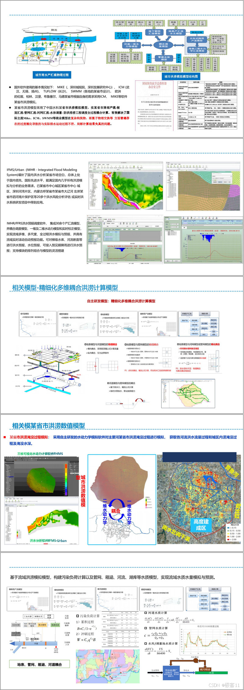 - 模型平台创新:方案提出自主研发的“精细化多维耦合洪涝模型”,解决了国际主流软件(如MIKE、ICM)在复杂水利构筑物模拟中的失真问题。同时,结合SWMM模型实现管网排水优化,支持城市内涝预警。