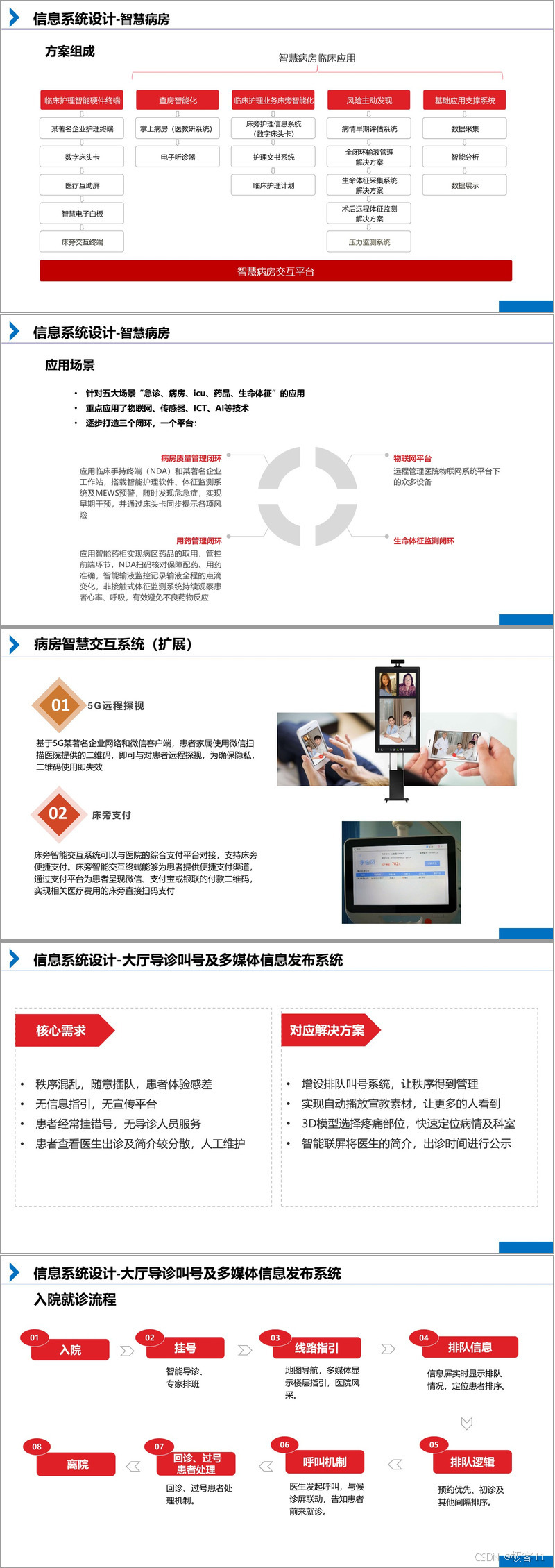 - 信息系统:聚焦病患智能导航、智慧病房、导诊叫号及多媒体信息发布系统等核心应用,解决就医流程中的痛点。