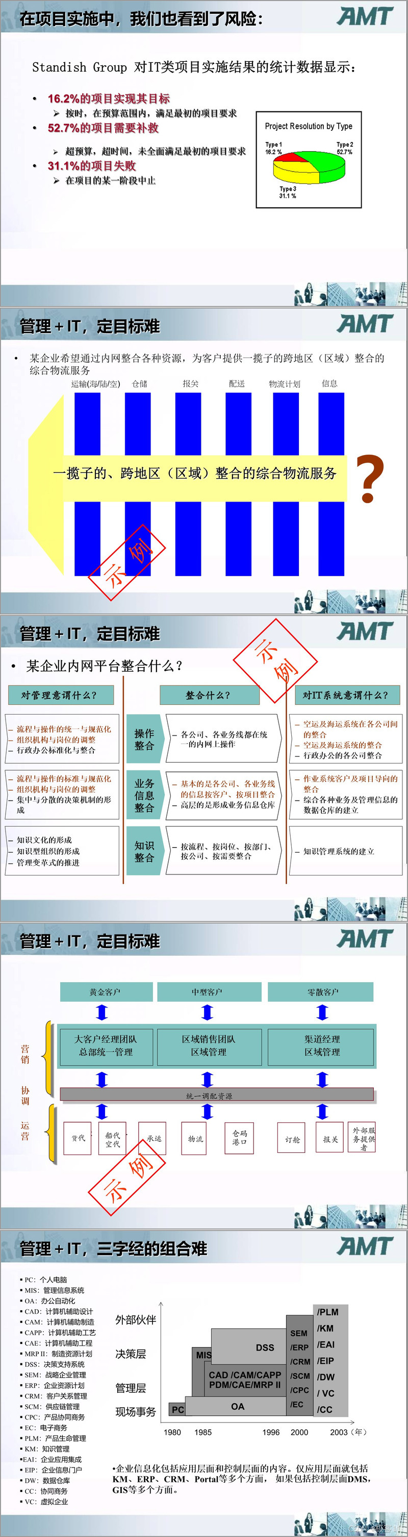 资料特别强调,IT规划的本质是"管理+IT"的有机结合,而非单纯的技术方案。它需要从战略实现和业务发展的角度,系统规划IT的贡献价值。