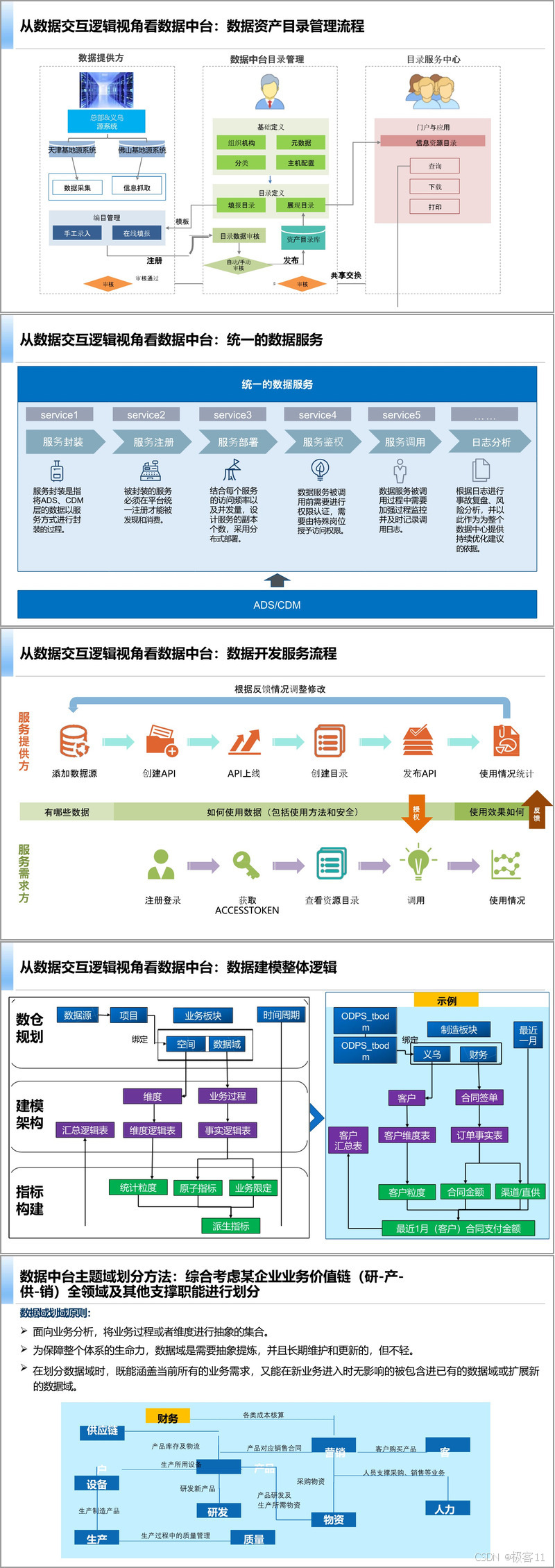 文件介绍了数据资产目录,它如同数据的 “索引”,方便企业快速查找和定位所需数据。数据服务流程明确了数据从产生到提供给业务部门使用的整个过程,保证数据服务的规范性和高效性。数据建模逻辑则是构建数据模型的依据,通过合理建模,能更好地反映业务本质,挖掘数据潜在价值。同时,文件对数据中台主题域进行了划分,如客户域、产品域等,使数据管理更具条理性。