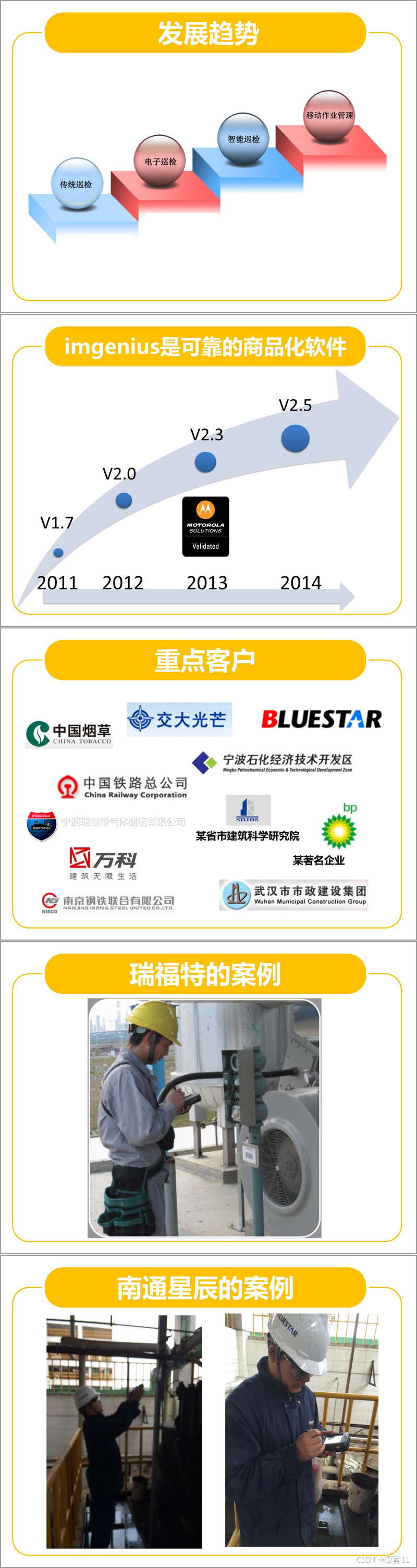 系统定位与行业基础方面,imgenius 是经过市场验证的商品化软件,已服务中国烟草、南京钢铁、南通星辰等多行业重点客户,其发展顺应了从传统巡检、电子巡检到智能移动作业的行业趋势。通过某著名企业终端实现现场作业的数字化管理,打破了纸质记录的局限,尤其在流程复杂、设备密集的制造场景中展现出显著优势,如厦门烟厂的应用案例已被行业期刊《中国设备工程》报道,印证了其在提升设备管理效率上的实效。