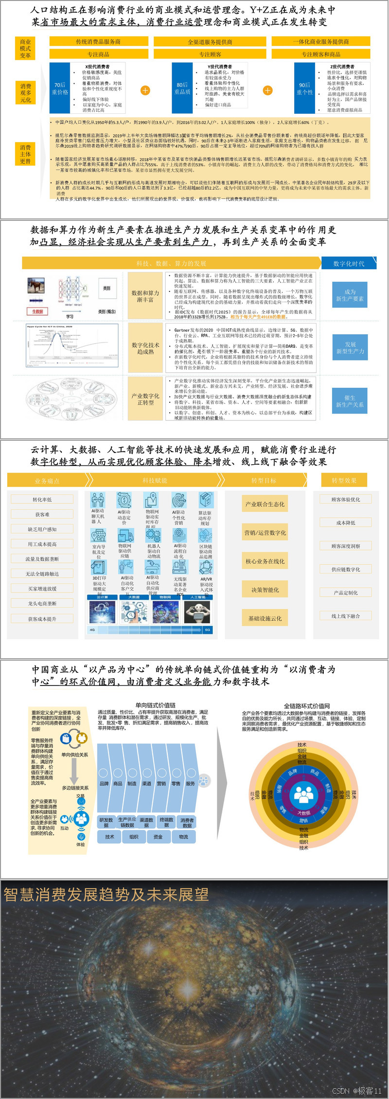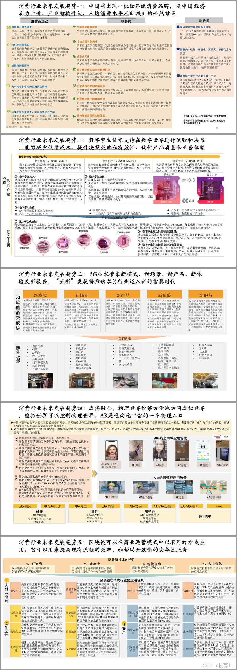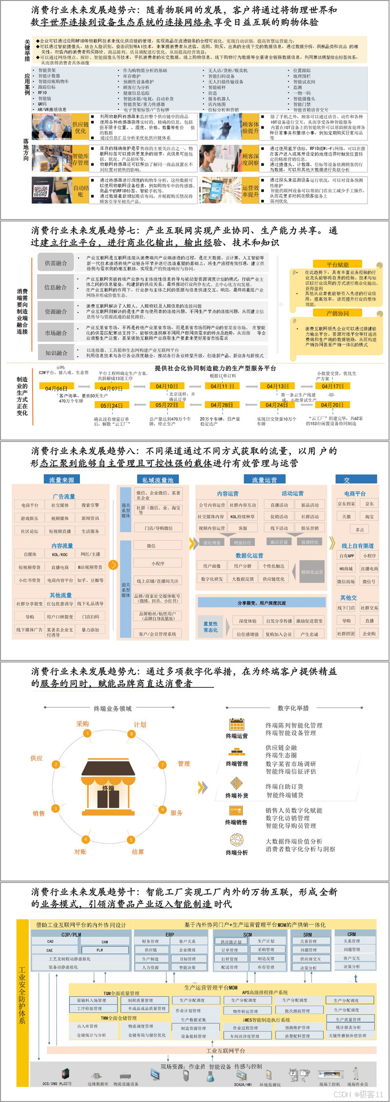 智慧消费发展呈现多方面趋势。中国将出现世界级消费品牌;数字孪生技术能减少试错成本、提升决策效率;5G 技术带来新模式等 “五新” 发展;虚实融合成趋势,AR 是元宇宙物理入口;区块链可提高流程效率、开发新服务;物联网让购物体验更互联;产业互联网实现产业协同;不同渠道流量汇聚管理;数字化举措赋能品牌商;智能工厂引领智能制造时代。