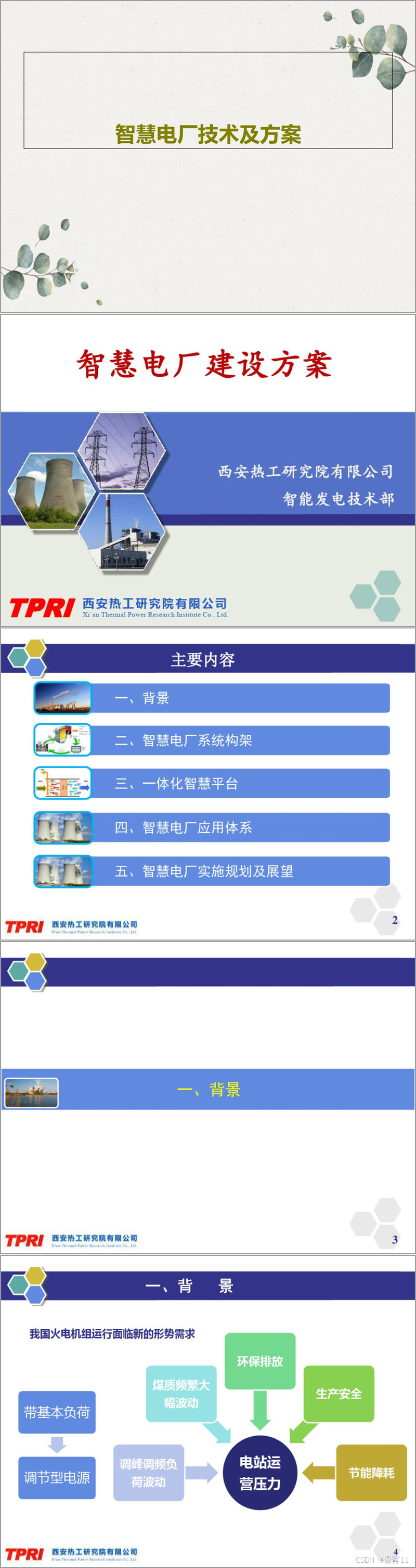 在全球能源结构转型和电力系统智能化发展的大背景下,火力发电正面临前所未有的挑战与机遇。某著名企业旗下西安热工研究院有限公司(TPRI)智能发电技术部撰写的《智慧电厂技术及方案》文件,系统性地阐述了智慧电厂的建设框架、关键技术及实施路径,为行业提供了具有前瞻性和实操性的解决方案。