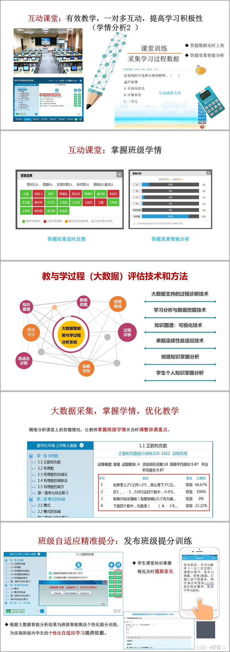 教与学过程采用大数据评估技术,从课堂训练、作业完成、在线测评等多维度采集数据,形成个人与班级层面的学情报告。系统能自动预测学生成绩趋势,为教师教学调整和家长辅助辅导提供科学依据。管理公共服务平台更具备区域级数据分析能力,可对资源使用情况、用户发展规模等进行多维度统计。