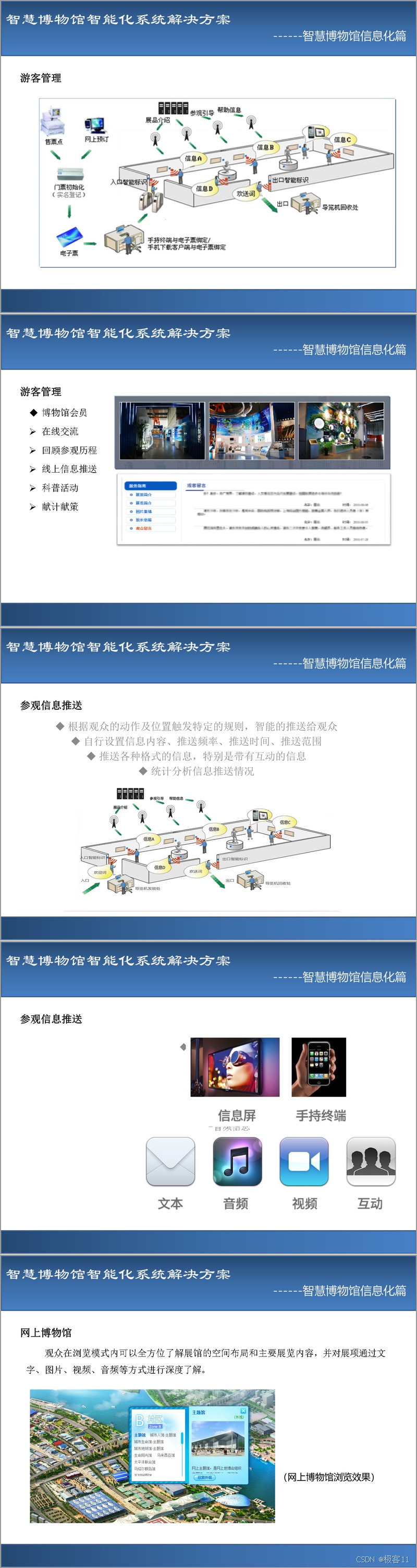 在信息化板块,方案提出构建包括藏品管理、游客服务、会员互动、信息推送及网上虚拟博物馆在内的全方位数字体系。游客可通过多终端接收定制化信息,参与互动体验,回顾参观历程。而网上博物馆突破时空限制,以沉浸式浏览和互动模式再现实体展览内容。