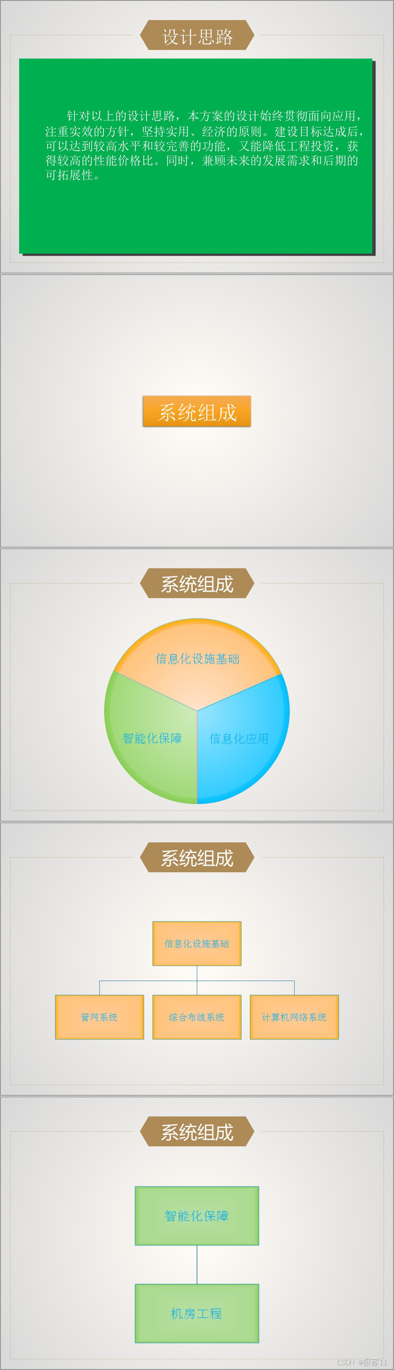 本方案将整个弱电系统划分为三大逻辑层次:信息化设施基础、智能化保障和信息化应用。这种架构确保了系统的稳定性和可管理性。
