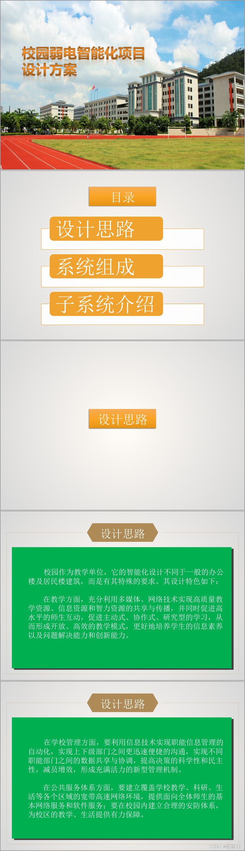 校园作为特殊的教学单位,其智能化建设承载着促进教学革新、提升管理效率、保障校园安全的重要使命。本方案旨在构建一个技术先进、实用经济、并具备良好扩展性的综合性校园弱电智能化体系。整个设计严格遵循“面向应用,注重实效”的方针,力求在实现高水平功能的同时,控制工程投资,获得优异的性价比,并为未来的发展需求预留空间。