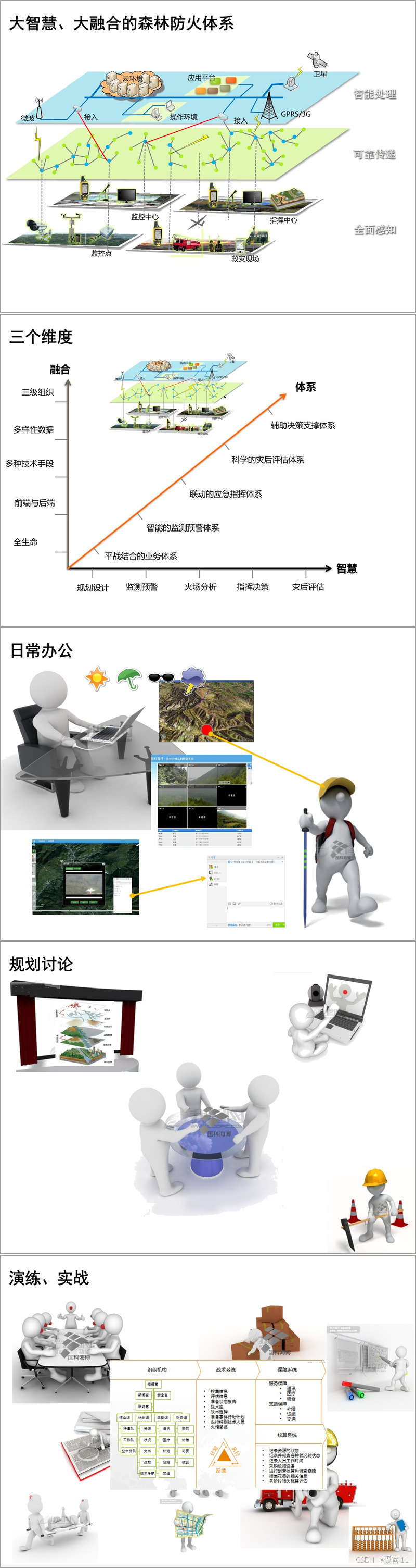 该解决方案的构建并非空中楼阁,而是基于深刻的现实背景与明确的顶层设计。文件开篇即通过多个典型案例,如四川道孚县、云南丽江等地的森林火灾,生动揭示了当前防火工作的严峻性与紧迫性。这些案例凸显了从火情发现、精确定位到应急指挥、灾后评估的全链条中所存在的短板。方案的建设模式立足于“大智慧、大融合”的理念,致力于打造一个贯穿日常办公、规划讨论、模拟演练与实战指挥三个维度的森林防火体系,其核心特征是实现音视频一体化、数字化、管理智能化、系统集成化与传输网络化。